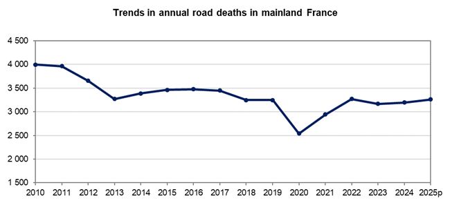 3,513 people died in 2025 on the roads of mainland France and overseas territories (provisional ONISR results).