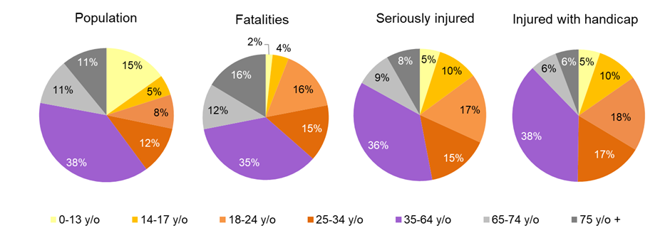 - 1,400 people aged 65-74 were seriously injured, a higher figure than in 2024 (+2%) and 2019 (+6%).