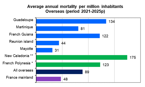 - 179 people died in the overseas departments and regions (+12% compared to 2024 and +10% compared to 2019)