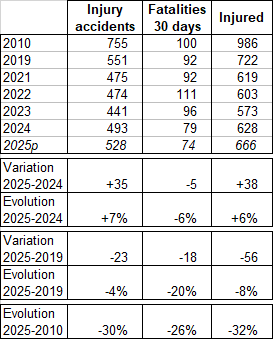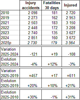 - 800 children (aged 0-13) were seriously injured, an increase compared to 2024 (+13%) and 2019 (+4%).